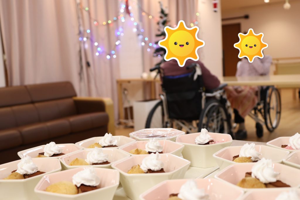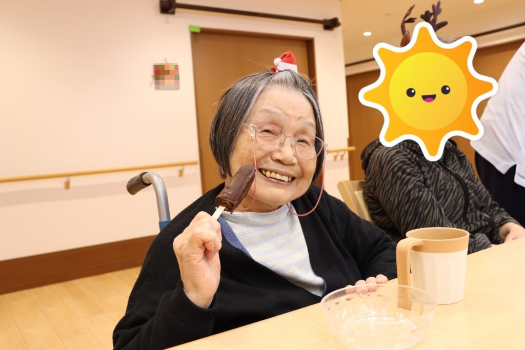 こちらのユニットではお昼ご飯の時に行っていました☺デザートから食べている入居者様がかわいらしかったです♡