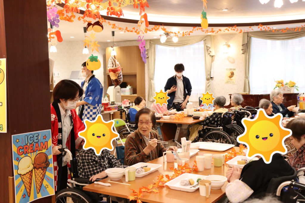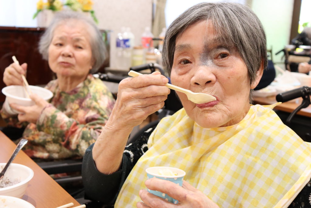 こちらの入居者様は、ソフトクリームを召し上がっていました🍦チョコレートソースや、きな粉、黒蜜などもあって